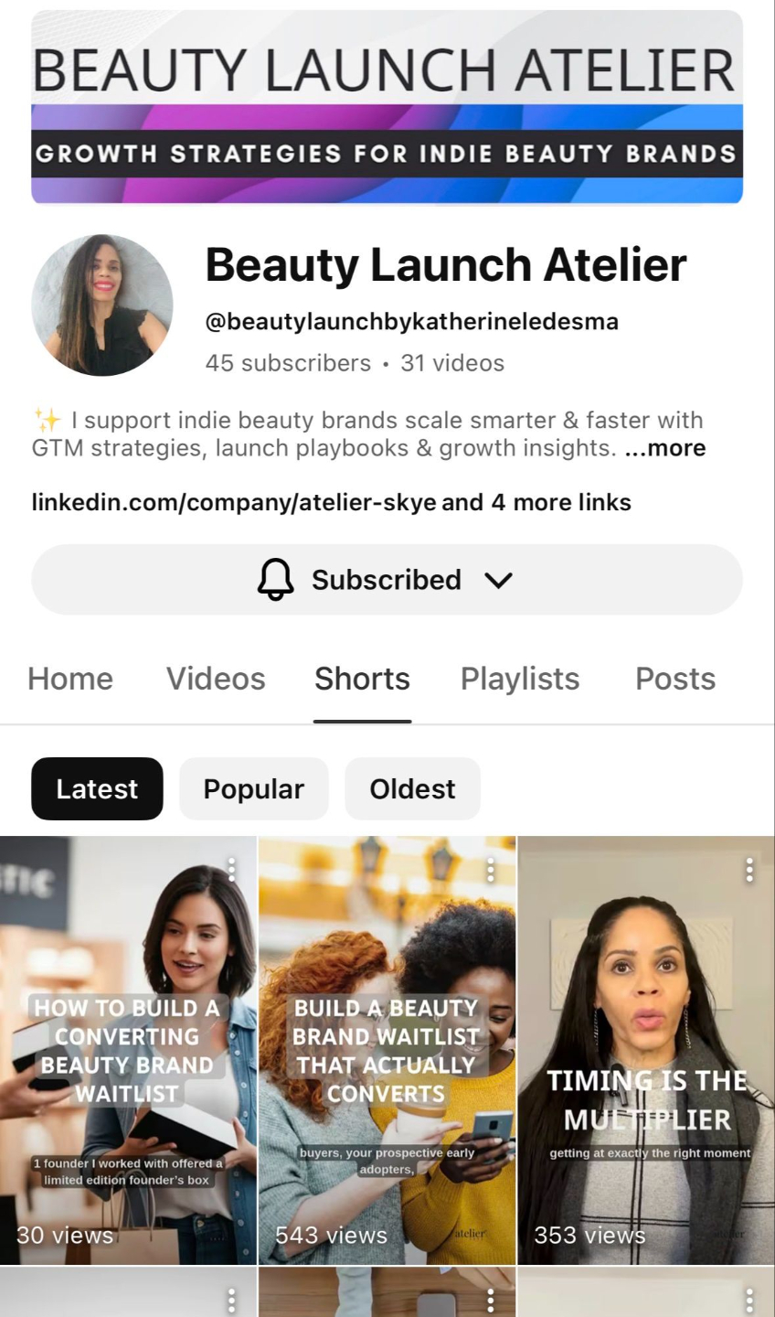 3ď¸âŁ Join me on YouTube for Indie Beauty Growth Strategies â weekly actionable GTM systems, scalable frameworks, and real examples you can implement immediately.